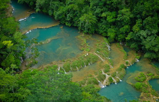 Did you know... Semuc Champey means where the river hides under the stones, it consists of a natural 300 m limestone bridge, under which passes the Cahabón River. Atop the bridge is a series of stepped, turquoise pools, a popular swimming attraction.